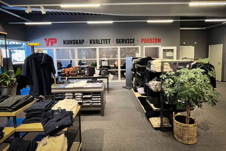YP i Borås har ett stort sortiment arbetskläder, allt presenterat i en ljus och trivsam lokal.