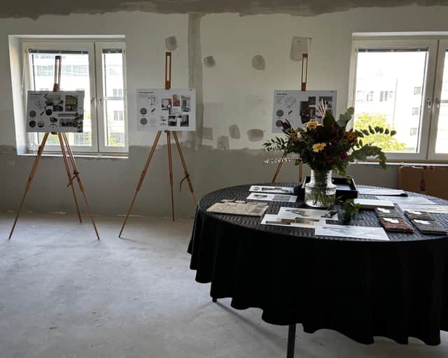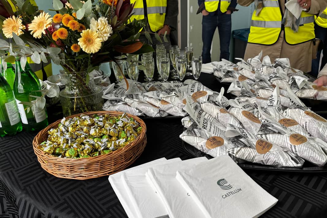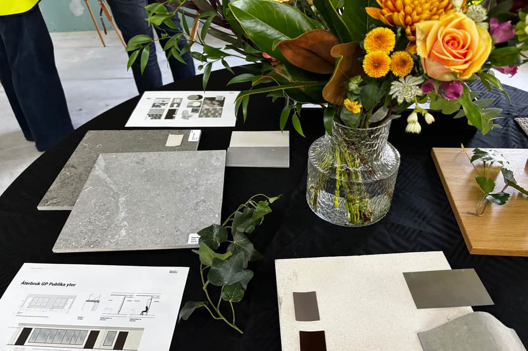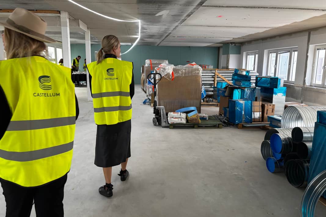 I slutet av september bjöds medarbetare in till en visning på byggarbetsplatsen. Där presenterades visionsbilder, materialval och exempel på återbrukade byggdelar. Rundvandringen förgylldes av bubbel och lättare lunch tillsammans med representanter från Castellum, arkitektbyrån Semrén & Månsson samt entreprenören BRA Bygg.