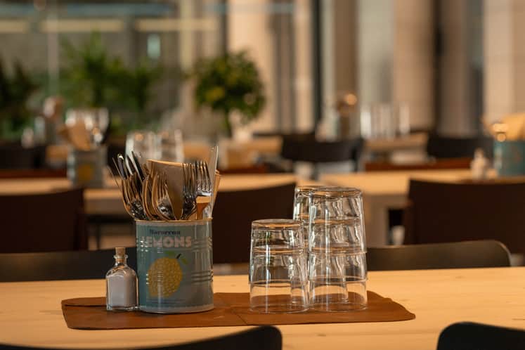 Restaurangen, som ligger i Werkets ljusa och luftiga atrium, är en destination i sig. För vad sägs om mat som lagas på säsongens närproducerade råvaror? Där, dessutom, varje del av råvaran tas tillvara i både matlagning och i bageri.