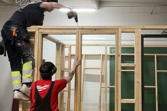 Det visade sig nämligen att grannlokalen blivit ledig, vägg i vägg. Efter att Castellum även fixat med nytt pentry, duschar, omklädningsrum, toaletter och kontorsdel är Johan och David väldigt nöjda hyresgäster.