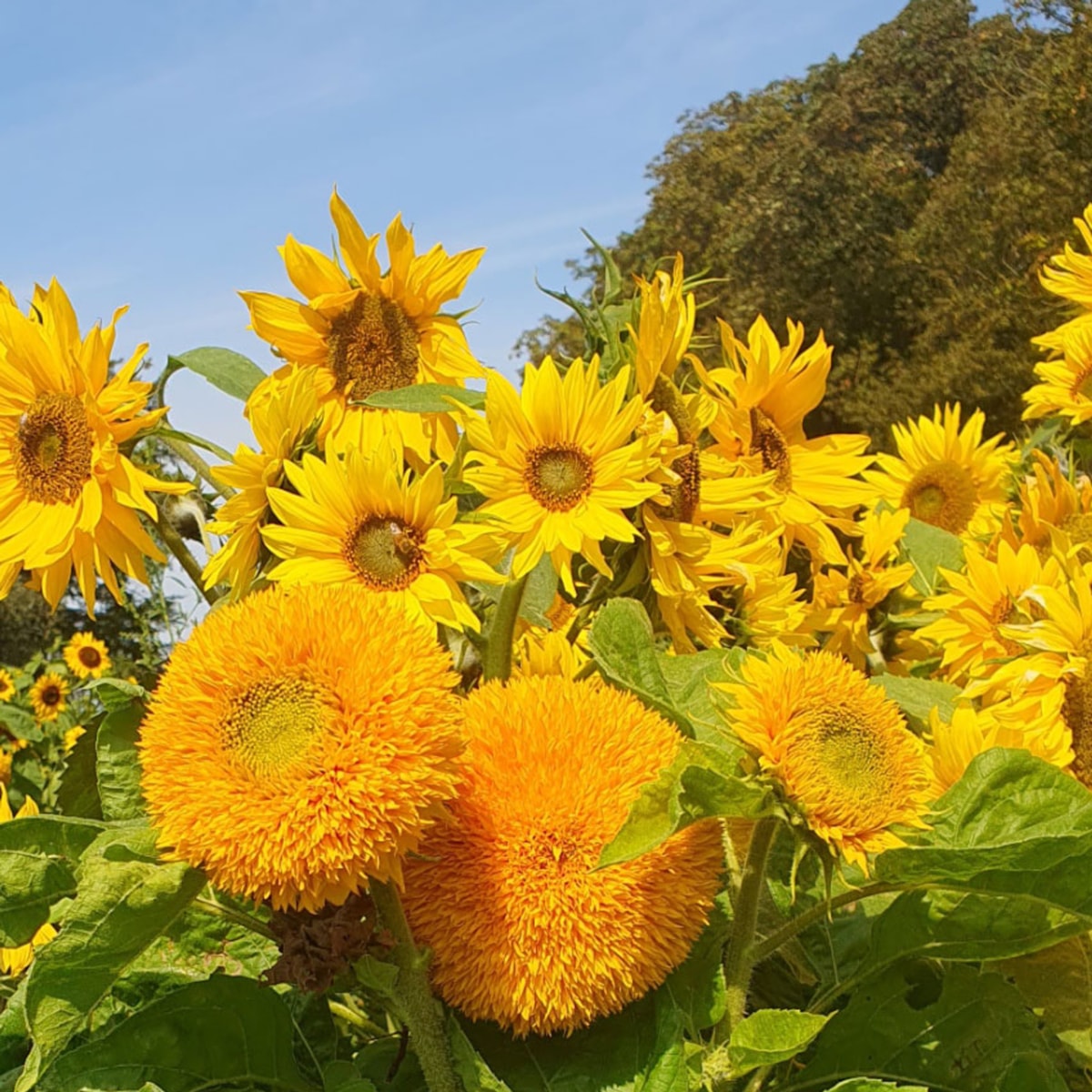 ”Det var 5 olika sorters solrosor med olika utseende och olika mognadstid så de sista blommorna höll ända in i oktober. Därefter lät jag blommorna stå kvar för att gynna det vilda, det blev fågelmat helt enkelt”, berättar han