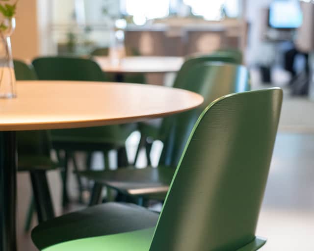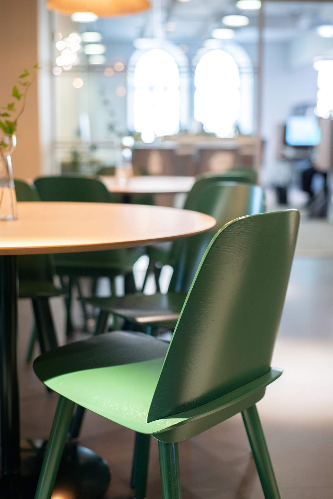 Här, på Nikolaigatan 1, möts du som sagt av en rymlig och välkomnande entréyta. Lite längre in i lokalen finns kontorslandskapet med olika typer av arbetsplatser.