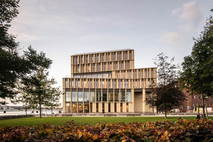 Den 10 000 kvadratmeter stora byggnaden, belägen intill vackra Munksjön, är ett bevis på hur modern arkitektur och hållbarhet kan gå hand i hand. Byggnaden består av totalt sju våningsplan, där de fyra översta är kontorsytor som är indragna för att skapa takterrasser. Dessa terrasser fungerar som attraktiva mötesplatser med utsikt över Munksjön och kajpromenaden.