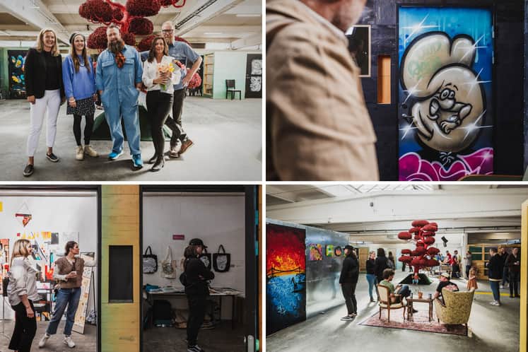 Stämningen var topp och förväntningarna höga när dörrarna öppnades och de inbjudna gästerna tog steget in i vår fastighet Hamnen på Ringön. Råa betonggolv och träväggar möter färgstarka konstverk och peppade hyresgäster. Och vårsolen hittade med lätthet in genom de stora takfönstren.