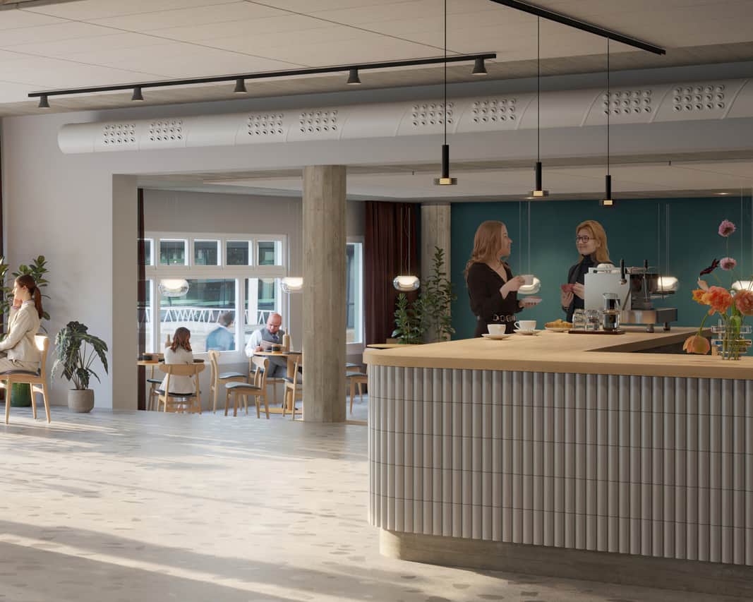 En trevlig måltid handlar om så mycket mer än att bli mätt. Att byta miljö för en stund, ge både kropp och hjärna vad den behöver och en paus värd att längta till är minst lika viktigt. Husets restaurang och café är det självklara målet för målet, oavsett om det är frukost, lunch eller något däremellan du behöver. Det kommer att vara en uppskattad oas för alla som jobbar här, och ett mysigt vattenhål för dem som vistas i kvarteren runtomkring.