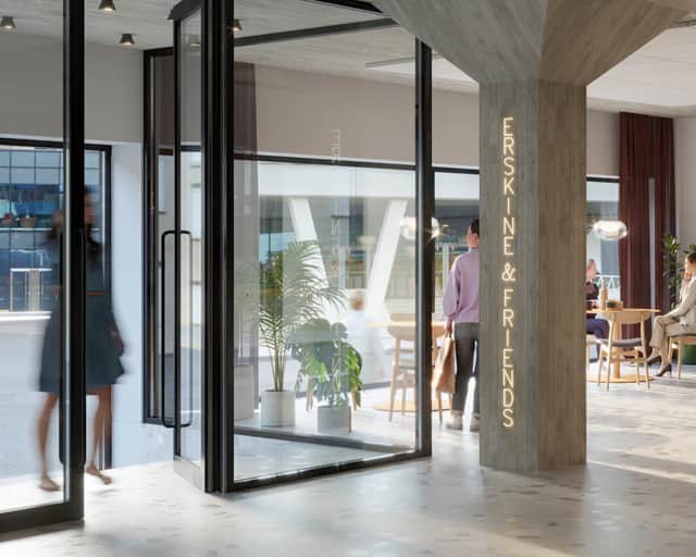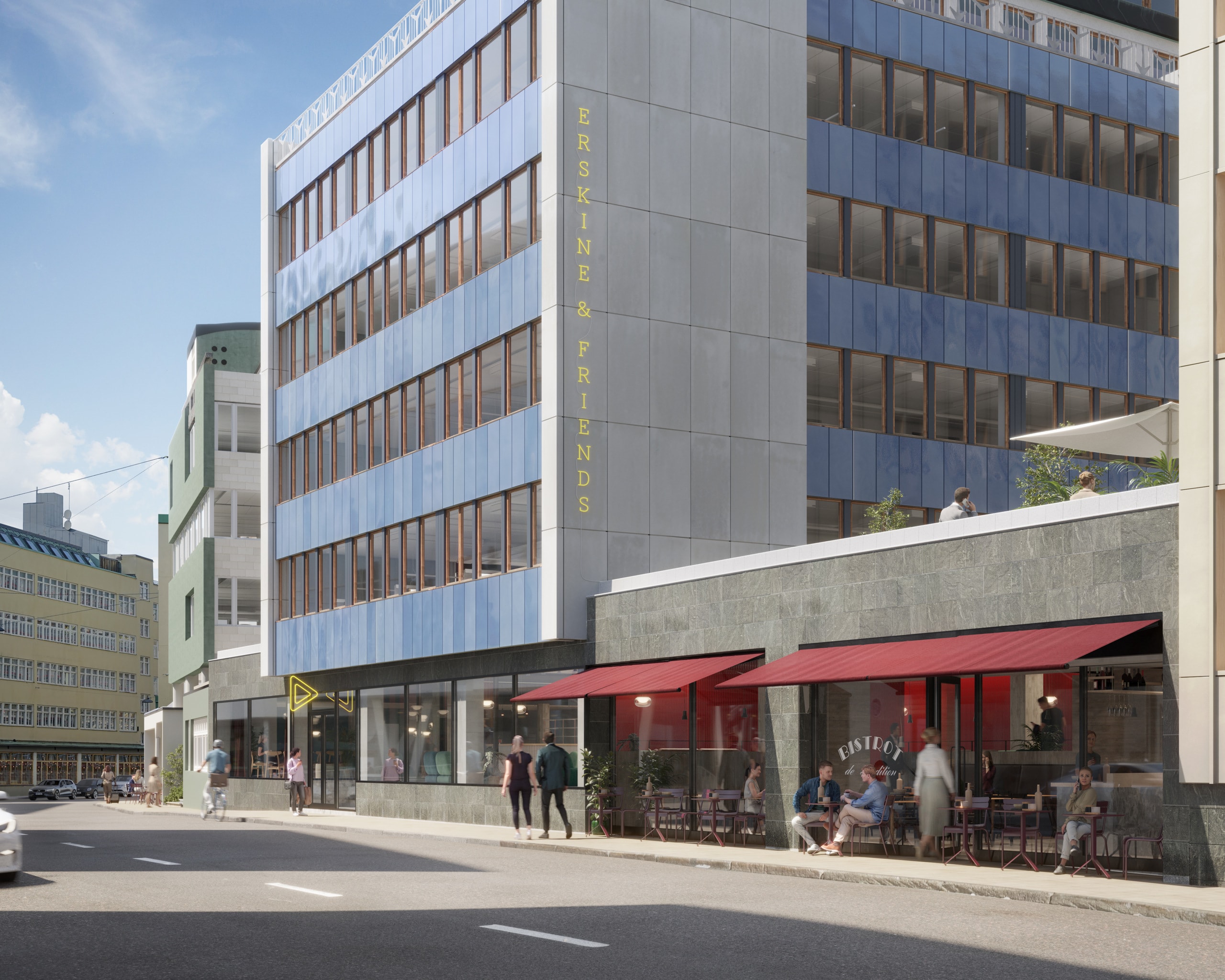 Erskinehuset är lätt att känna igen. En riktig ”conversation piece”. Fönstersättningen skapar variation och inget våningsplan är det andra likt, det finns alltid något nytt att uppleva. En spännande penthousevåning höst upp, terrassen på framsidan och restaurang på entréplan, bland annat. Och väljer man att sitta i hela huset finns möjlighet till en fantastisk egen entré. Låt oss sammanfatta det som en fantastisk arbetsplats.