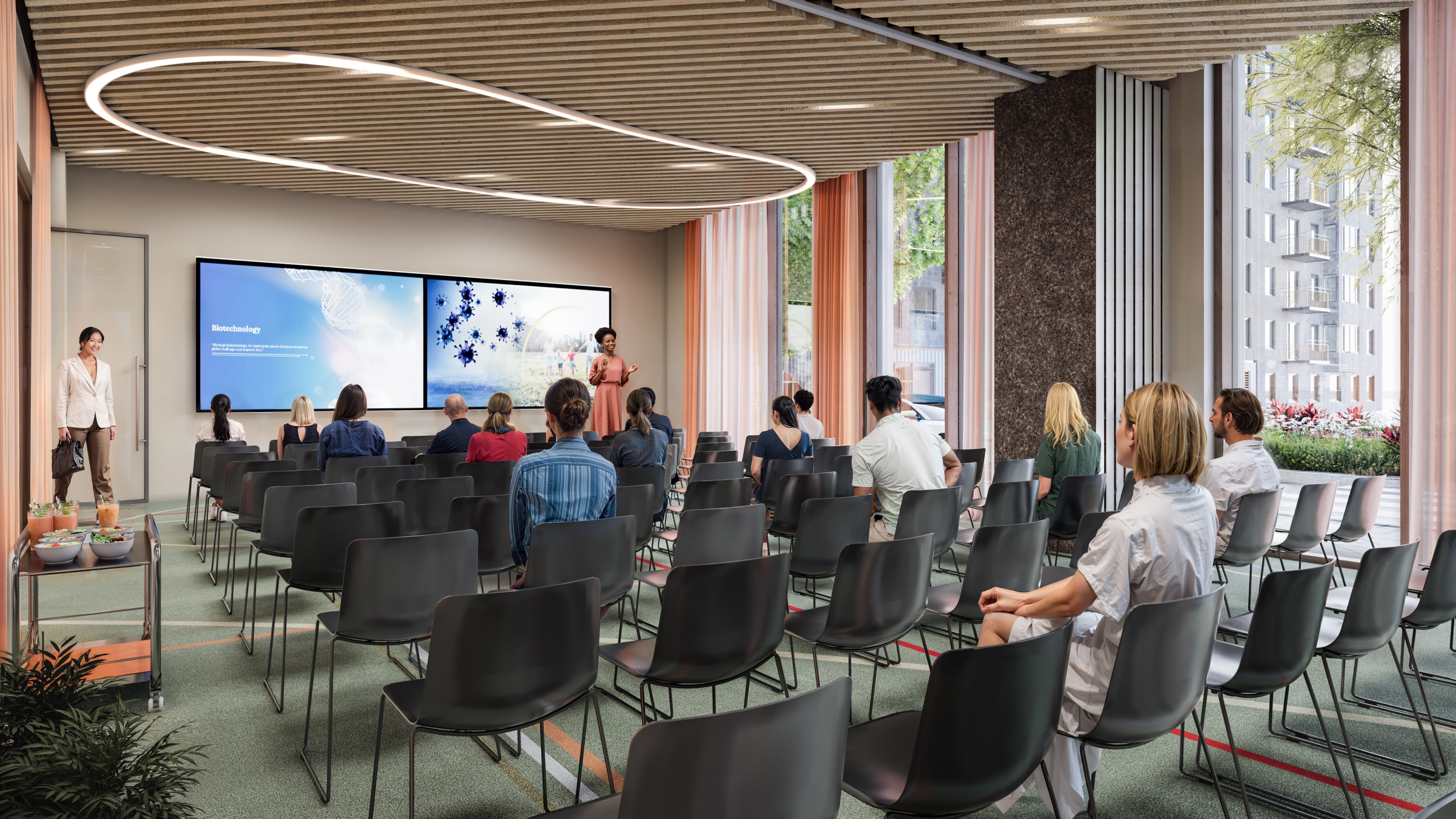 Högst upp på våning 8 kommer det att finnas bokningsbara konferensrum. Ett lite större för upp till 20 personer och ett mindre för upp till 10 personer. Pentry, loungyta och takterass i nära anslutning.