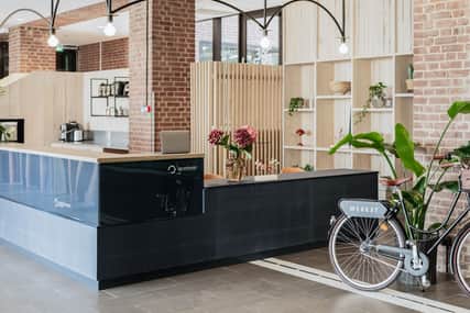 Med facit i hand känns det hela självklart. Att den röda tråden skulle vara grön. Bland blåmelerade trämöbler och räddade restbitar har det gjorts plats för mer när gammalt blir nytt. I allt från möbler till materialval har hållbarheten brett ut sig här på Werket när den stora huskroppen skulle renoveras. De öppna, inbjudande ytorna fylls av föremål som fått nytt liv. I stället för att hämta nytt har vi hållit tillbaka för att hålla ihop. Genom att skala av växte Werket fram, och bevarar inte bara miljön, utan även själen i en byggnad som präglat Jönköpings stadskärna.