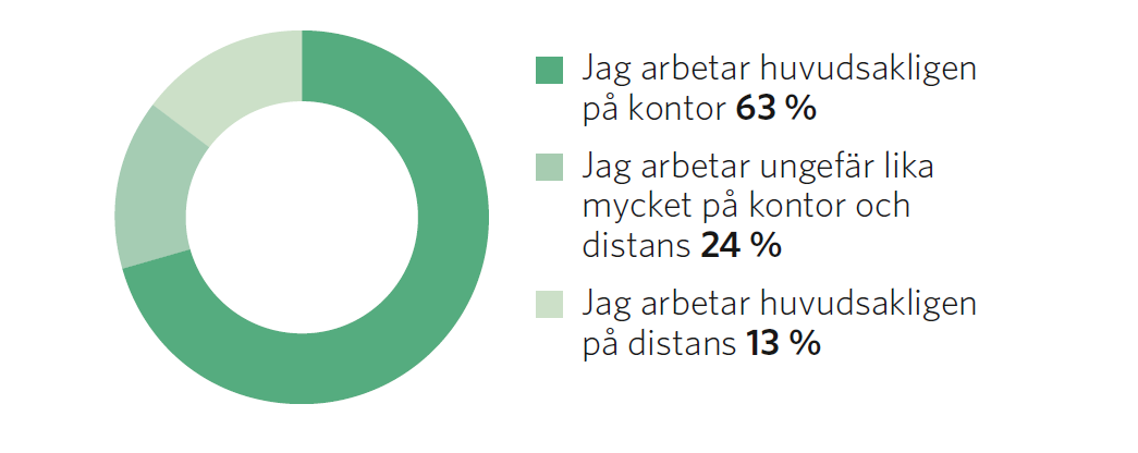 | Jag arbetar ungefär lika mycket på kontor och distans, % | 37 | 24 | 30 |