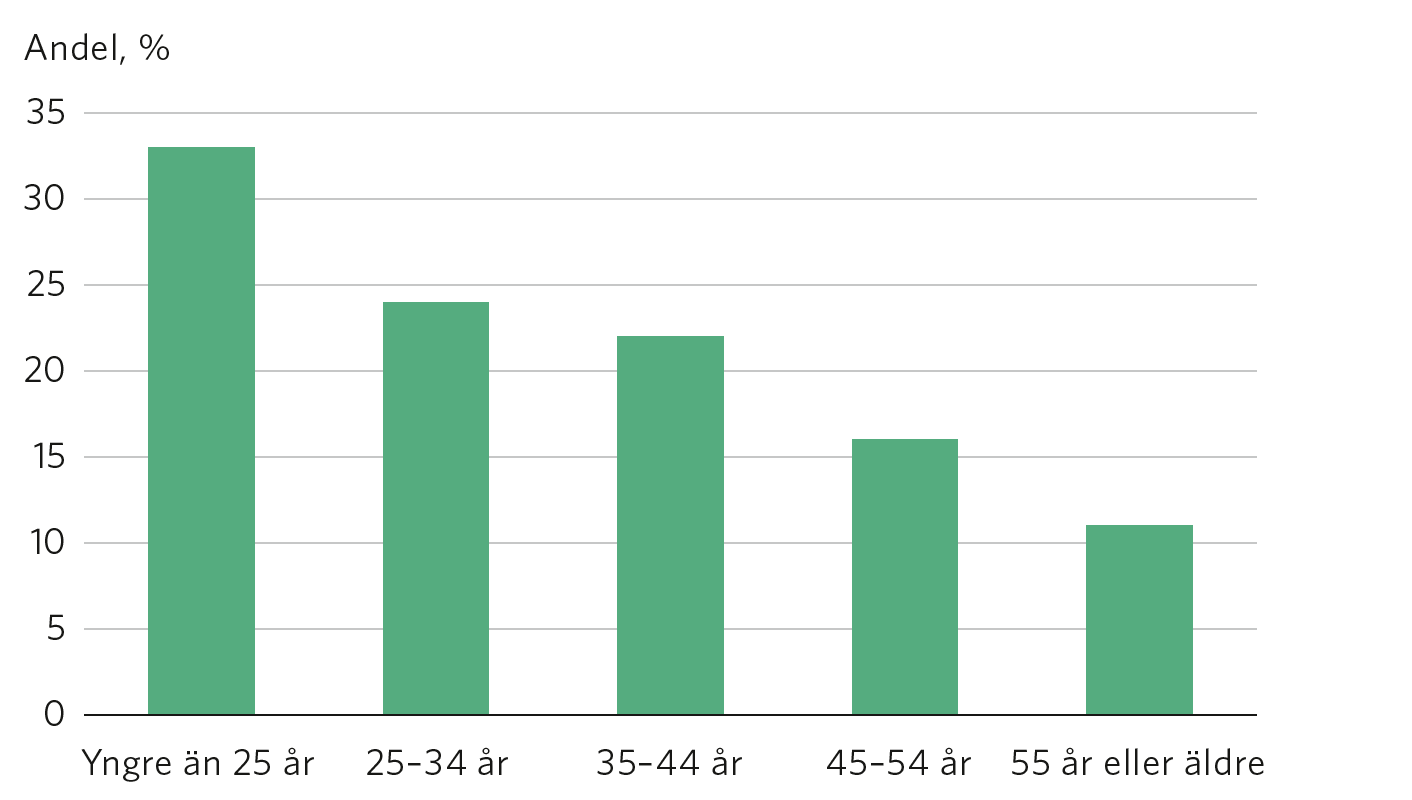 Andel som tycker att den största fördelen med kontoret är kollegorna (ålder)