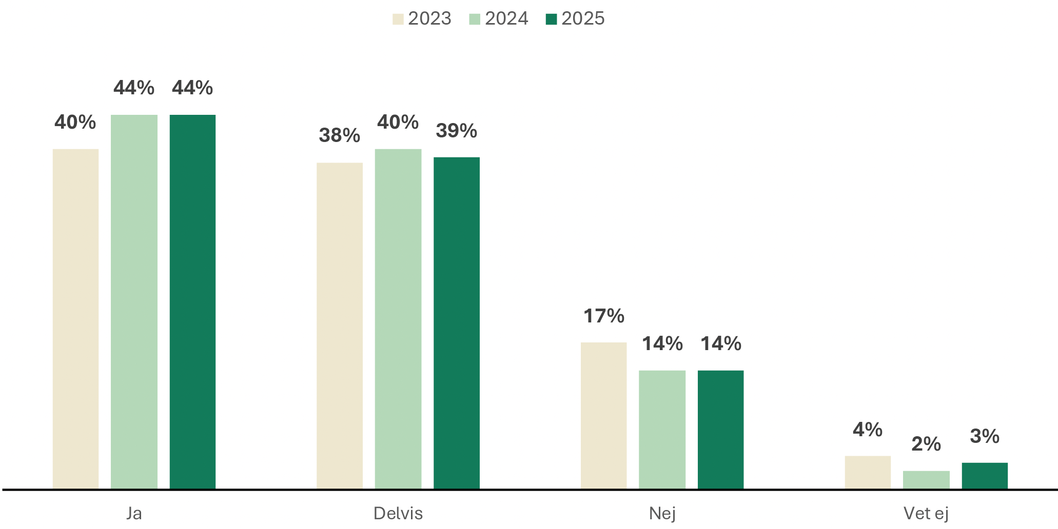 | År | Positivt | Ingen skillnad | Negativt | Vet ej |