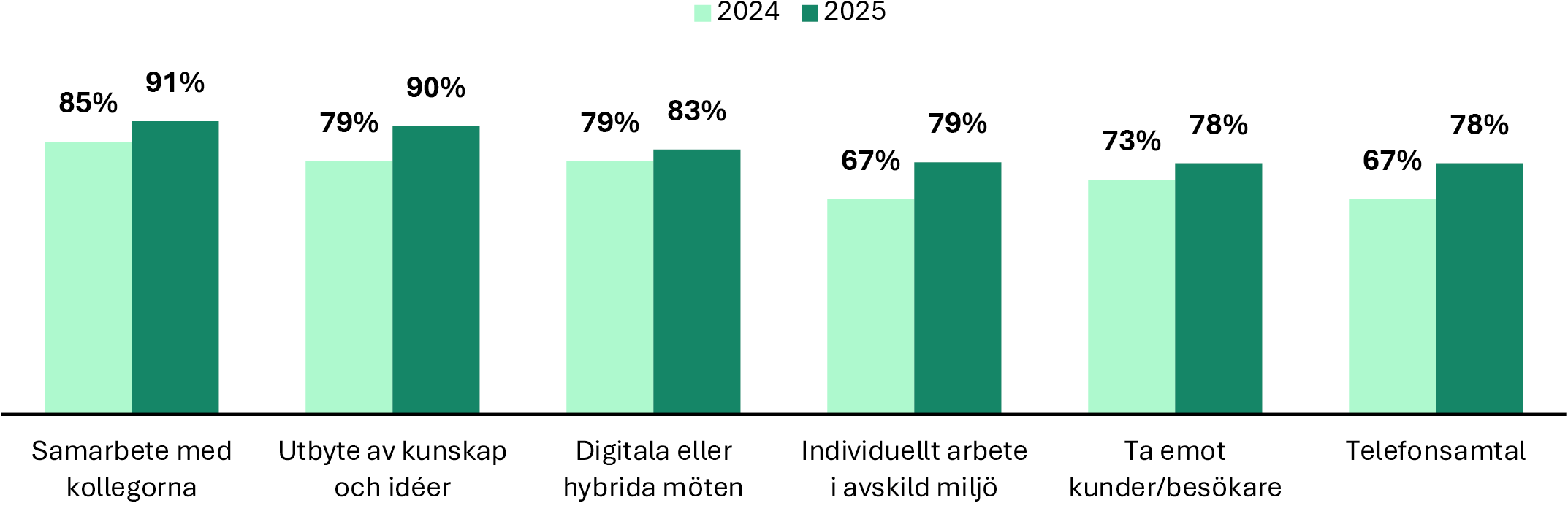 | Digitala eller hybrida möten | 87% | 57% |