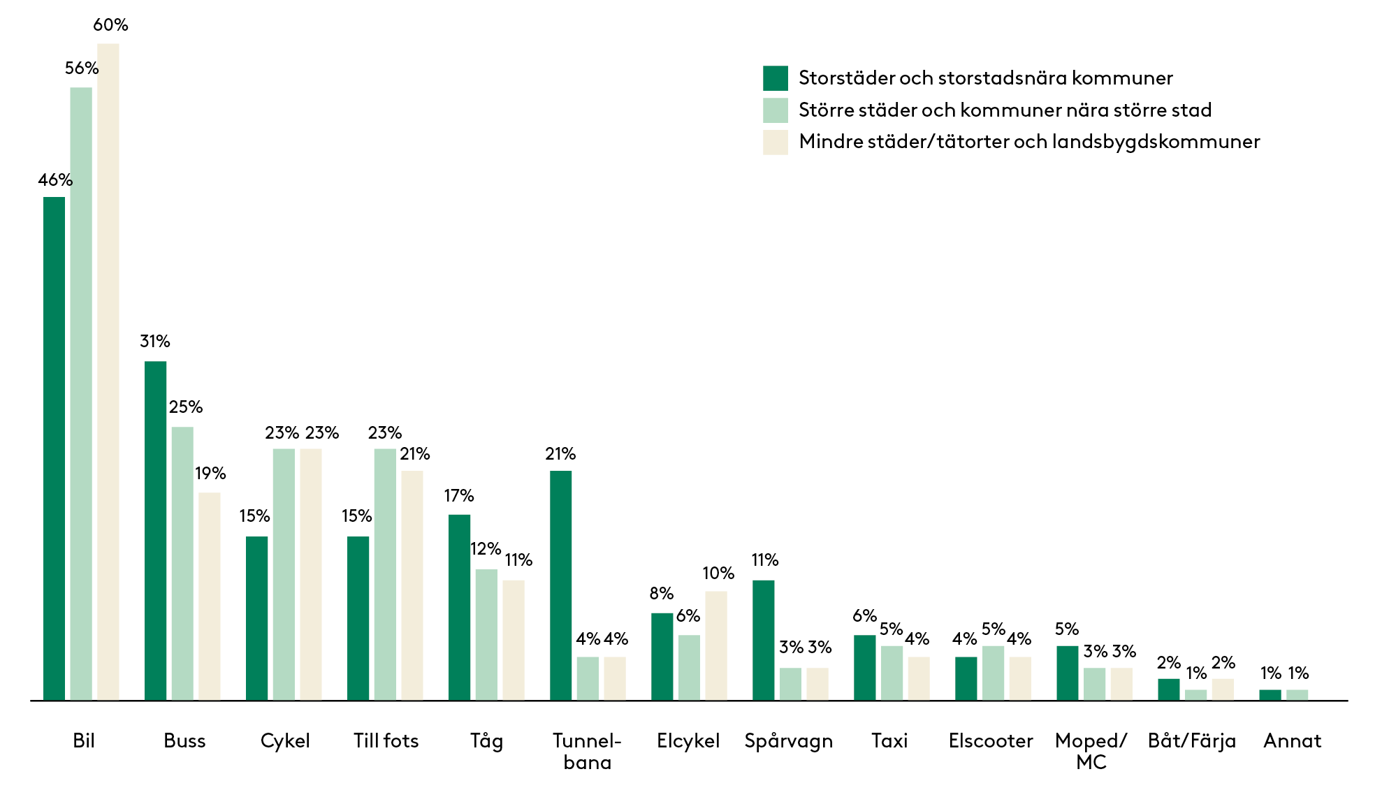 | Cykel-/gångavstånd från ... | 31% | 28% | 37% | 46% | 38% |