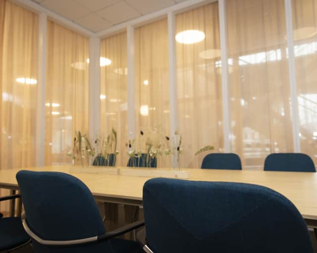 Med generöst ljusinsläpp och modern konferensteknik skapas en professionell miljö för både fysiska och digitala möten. Namnet Linnea är inspirerat av naturen – en del av husets genomtänkta miljö som bidrar till lugn, fokus och närvaro under mötet.